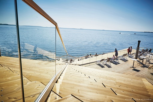 拍摄者: Nikolai Alin, VisitFinland  桑拿房出来跳入海水中游泳 桑拿开放时间 周一16-22点,周二至周四和周日13-22点,周五和周六13-23点(周四和周六早上8-10点) 拍摄者: Nikolai Alin, VisitFinland  桑拿开放时间 海边大型露天阳台拥有超过1600平方米的户外座位区,分为三层。 露台在餐厅营业时间开放,如果天气允许的话。 屋顶还有一个户外区域,可以欣赏到美丽的海景。