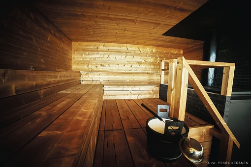 拍摄者: Harri Tarvainen, VisitFinland  大型露天阳台 在这里三种不同的桑拿室全部采用木材加热:一个是持续加热的桑拿室,一个是一次性加热的桑拿室(桑拿室开放前一天加热,晚上保持温暖)以及一个传统的烟熏桑拿室。男女都有独立的更衣室和淋浴设施,但由于桑拿室和其他公共区域混杂在一起,所以来桑拿体验的客人总是被要求穿着泳衣的。 拍摄者: Pekka Keränen, VisitFinland  桑拿房